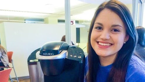 Anyway, Keurig Girl has a name and it's Madison Collins, self-proclaimed weirdo who randomly brought her coffee machine to the library one fateful night she knew she'd be up late. Turns out, not having to wait on line or pay for coffee is convenient, so she did it through finals week and quickly, her nickname and M.O. spread throughout the campus like wildfire, thanks in part to Yik Yak (according to Madison's blog).