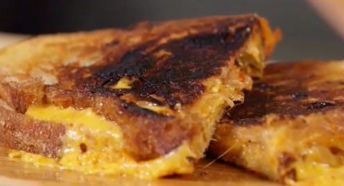 As a true Millennial, though, I couldn't help but wonder what else is out there. As someone who takes grilled cheese pretty darn seriously, I decided to do some important research — and as it turns out, when it comes to the wild and wacky world of fantastic, over-the-top grilled cheese flavor combos, you ain't seen nothing yet. There's apple, cheddar and bacon grilled cheese, melon and chorizo grilled cheese, French toast grilled cheese with apples and caramel... be still my heart. But make sure you have one of those cereal bars close by, because your tummy will be doing the Mamba. This here is the very stuff of "can't even." Check out the kimchi grilled cheese, star of the show, plus three other killer grilled cheese sandwiches we're delighted to learn actually exist.