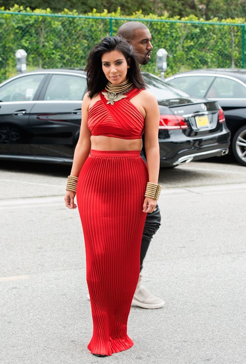 Most importantly, however, was both Kim K and RiRi showing up in matching coordinates. Not to brag or anything, but I sort of predicted that matching separates would remain a trend in 2015. Between the two of them, there's enough fashion influence to extend a trend's shelf life and I'm glad they're keeping one of my faves alive. Kardashian looked goddess-like in her drapey red outfit, stacked jewelry, and lob. Rihanna, of course, stepped it up a notch in a red floral print with a gauzy cardigan tucked into her skirt. Start practicing that tuck now, guys — I have a feeling that's also going to be a trend this spring!
