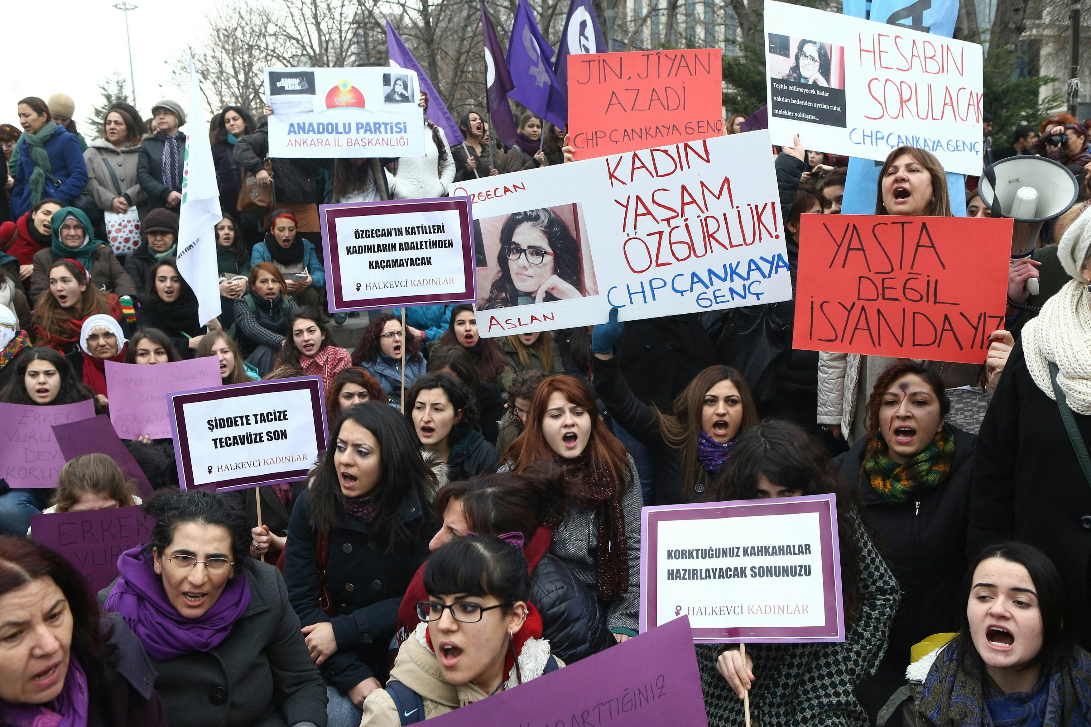 The murder and attempted rape of Aslan sparked protests across Turkey, primarily among other young women who, like Aslan, fear for their lives. Thousands of women demonstrated in the streets of Mersin, as well as the nation's largest cities of Istanbul and Ankara. They waved posters bearing Aslan's portrait and messages of solidarity, while demanding an end of violence against women.