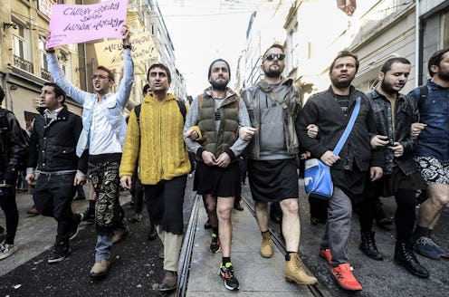 After the initial wave of women, Turkey’s men are now gallantly stepping up to the plate. The hashtag #ozgecanicinminietekgiy (approximately, “wear a miniskirt for Özgecan"), was introduced from neighboring Azerbaijan on Wednesday, Buzzfeed reports, accompanied by photographs of men wearing miniskirts and holding placards. The BBC quotes a statement made by proponents on Facebook, which reads (with overtones of the controversial Slut Walk movement): “If a miniskirt is responsible for everything, if [wearing] a miniskirt means immorality and unchastity, if a woman who wears a miniskirt is sending an invitation about what will happen to her, then we are also sending an invitation!”