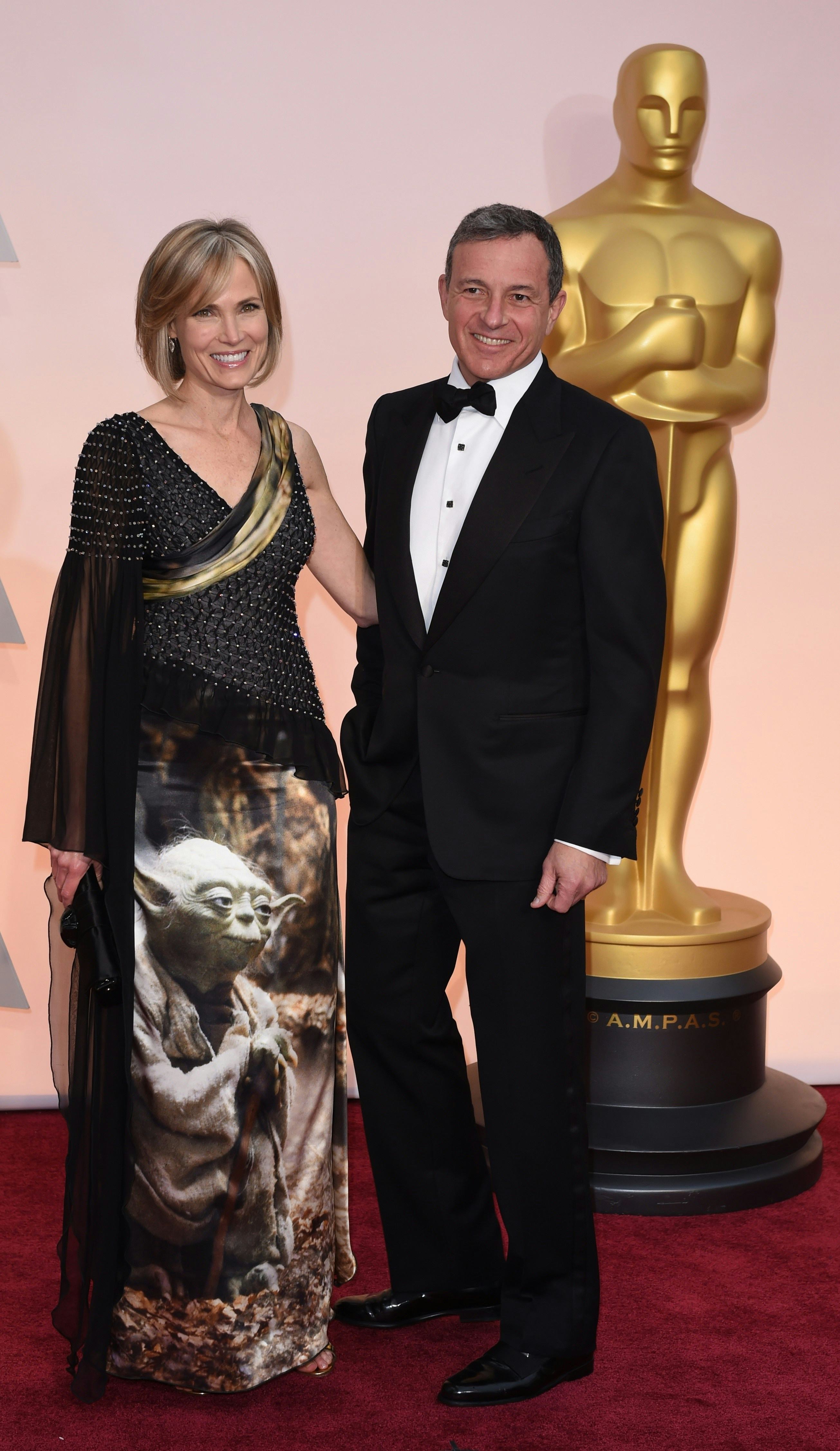 The days following a big award show are usually filled with best dressed, worst dressed, strangest dressed lists... you name it, there's probably a list for it. But sometimes an ensemble or two falls through the cracks. Of course Lady Gaga's 2015 Oscar gown (complete with gloves) is going to make every single red carpet roundup, but sometimes there are bizarre gowns worn by less famous stars that we just don't get to appreciate properly. Luckily, though, the Internet exists for this very purpose — to find the most amazing, weirdest things in this world and put them in their proper spotlight. This is where we get to Willow Bay, wife of Disney CEO Bob Iger, and the Yoda-themed Rodarte gown that she wore to the 2015 Academy Awards.