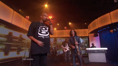 OK, so this is really weird but in case anyone else had an inkling that jazz musician Kenny G is actually more hip than he lets on, this next clip contains some solid proof. During the #MashUpMonday segment of Jimmy Kimmel Live, Kenny G and rapper Warren G performed together and while their laid-back rendition of the 1994 hip-hop classic "Regulate" wasn't bad (that song never ages), seeing the two of them onstage rocking out together like it was no big deal was rather strange. Even after discovering that Kenny G is actually a huge fan of hip hop, I still watched the performance with my head titled to the side, trying to figure out exactly how this collaboration came together.