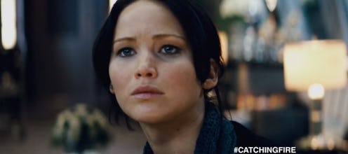 With just a little over a month left until the release, more promotional material for the upcoming Hunger Games sequel is rolling out — and it looks like shit is about to get really real. In the first TV spot for The Hunger Games: Catching Fire , we actually get a pretty good look at what to expect from the new film: More of that Peeta/Katniss/Gale love triangle, as promised, and tons of drama. Don't let the one-minute running time on this teaser fool you: A lot of stuff is going on here.