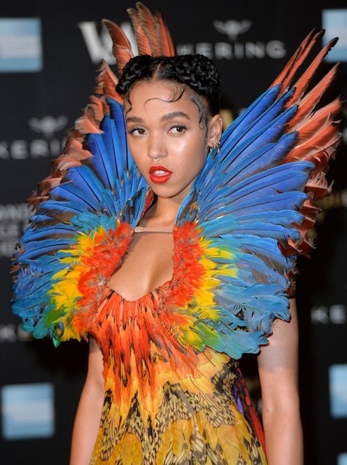 Songstress, dancer, and holder of our hearts FKA Twigs pulls the dauntless style card at any opportunity. Without or without her stylist, the unequaled Karen Clarkson, she consistently throws beauty editors curve balls with her wildcard looks, and that certainly applied to her look at the Alexander McQueen Savage Beauty Fashion Gala, a multicolored feather ensemble from the late designer’s Spring 2008 collection. It absolutely stuns.