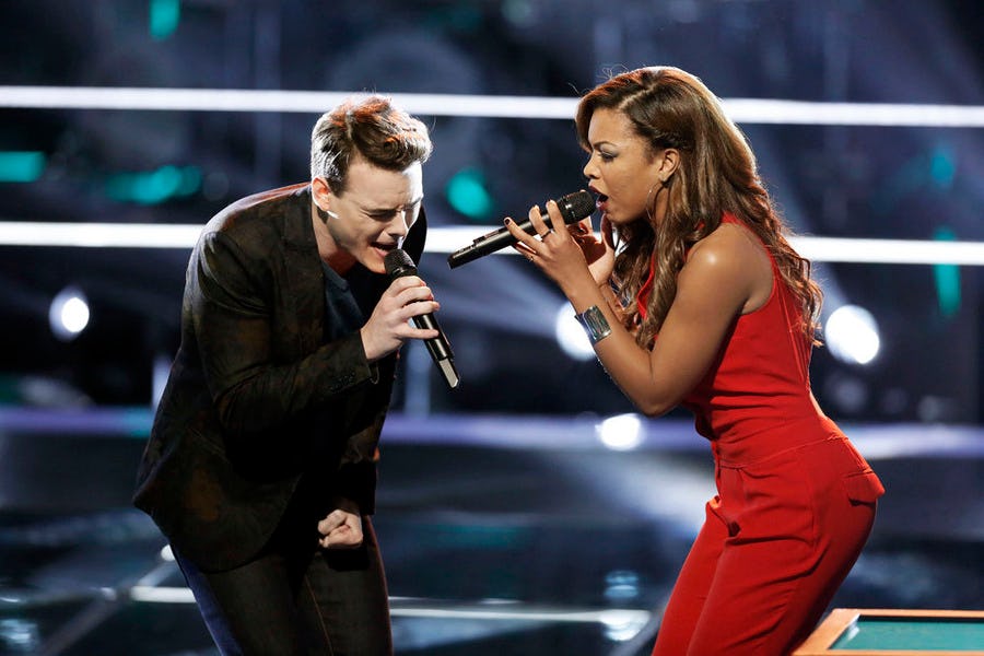 WOW. Just, wow. India Carney and Clinton Washington gave the best Battle Round performance of this season of The Voice — and quite possibly in the history of the show. Their performance of Rihanna's "Stay" was captivating, steamy, and emotional — and music video worthy according to Blake Shelton. On top of their beautiful performance, both artist's vocals were powerful and raw, giving Coach Christina Aguilera a tough decision. Carney's experienced voice earned her the win, but Washington was the one who deserved to stay.