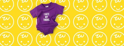 The problematic nature of a onesie that reads, "I hate my thighs," is sort of a messy one. On the one hand — as Wry Baby notes — no baby hates their thighs. Size stigmatization within our culture hasn't touched them. It probably won't for many years. But shouldn't the goal be to protect them from it? The fact remains that this onesie can either be seen as a mockery of those who do hate their thighs because a body-shaming society has made them hate those thighs (something questionable in and of itself given the sensitive nature of body dysmorphia — and something that inadvertently suggests that people who do care about their thighs are slightly shallow); or conversely (on the opposite end of the spectrum), an early example of taught fat shaming.