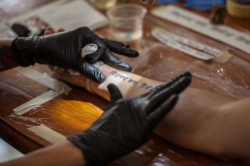 "People tend to touch the spot you just cleaned and prepared for the stencil, so once you do, it needs to be cleaned and prepped again," Metz-Caporusso explains. "Also, if you are touching your tattoo mid-process you are getting blood on your hand and touching things around the shop, plus the germs on your hands are getting in your open wound — so hands off."