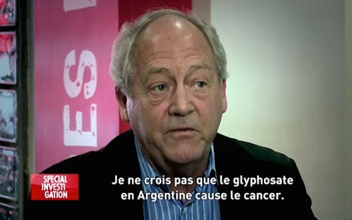 This, of course, brings us to Monsanto lobbyist Patrick Moore's Canal+ appearance. Moore attempted to use the appearance to polish up Roundup's faltering reputation, insisting with a fair amount of passion that it hasn't increased cancer rates in Argentina, and that a person could "drink a whole quart of it and it won’t hurt you." Of course, any shill for a controversial company who makes a claim like that opens themselves up to a pretty predictable retort: So you want some?