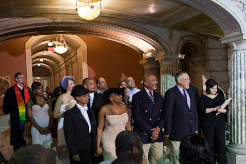 At 12:01 Monday morning, New Jersey became the 14th state to allow gay marriage, and same-sex couples began to have their long-awaited ceremonies. Nine couples were married by Newark Mayor (and soon-to-be Senator) Cory Booker just after midnight at Newark's city hall — but the rush wasn't just about excitement. Unlike other states to have recently legalized gay marriage, this milestone was expected to be temporary, thanks to Governor Chris Christie's push to appeal the court's September ruling. But on Monday morning, Christie asked Attorney General John Hoffman to withdraw the state’s appeal of a ruling, ensuring gay marriage will continue in New Jersey.