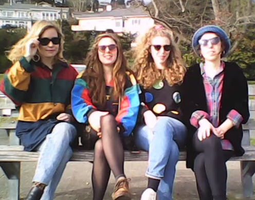 Chastity Belt's message of acceptance is only heightened by their accompanying video, which is basically a 90's-palooza of Reality Bites-outtakes and Friends-style shenanigans. The four women in the band are pictured playing guitar in the grass, rollerblading, returning books at the library, and chilling on park benches. It's playful, fun, and nothing like your usual hyper-sexual music video, which is why the message packs such a punch. By juxtaposing scenes of low-key female friendship and everyday life with lyrics about shame-free sex, Chastity Belt remind us that "sluts" come in all styles, and that if liking sex means you're a slut, then pretty much everyone in the world is one. "We're just a couple of sluts — so what? We like to fuck" Shapiro sings. So what indeed.