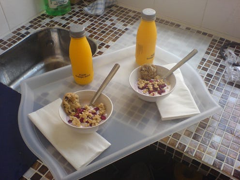 Morning people tend to get a head start and be way ahead of the game, which usually involves food because duh. What's the point of waking up early if it's not to start packing calories to fuel your super productive day? Which means, if you're their sleepy paramour lounging in bed, you might get some breakfast made for you too. Just don't forget: You're on dish duty. Again, gotta balance out these perks.