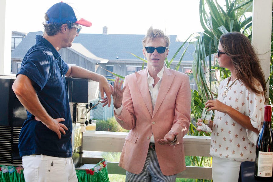 Cooper — actually K. Cooper Ray, but that's a little bit of a mouthful to be called on a TV show — has been a guest to a couple of big parties on Southern Charm this far into the second season. We first saw him accompany Ms. Patricia to Baby Kensington's Second Christening — he's the one who did a live-action pose with an Hermes bag asking if he looked like a GQ ad. He also attended Whitney and Shep's first beach house party with Landon. At the inaugural bash, we learned that Cooper is having a fashion show and, good news for us Southern Charm fans, asks Shep and Craig to participate in the show. YES.
