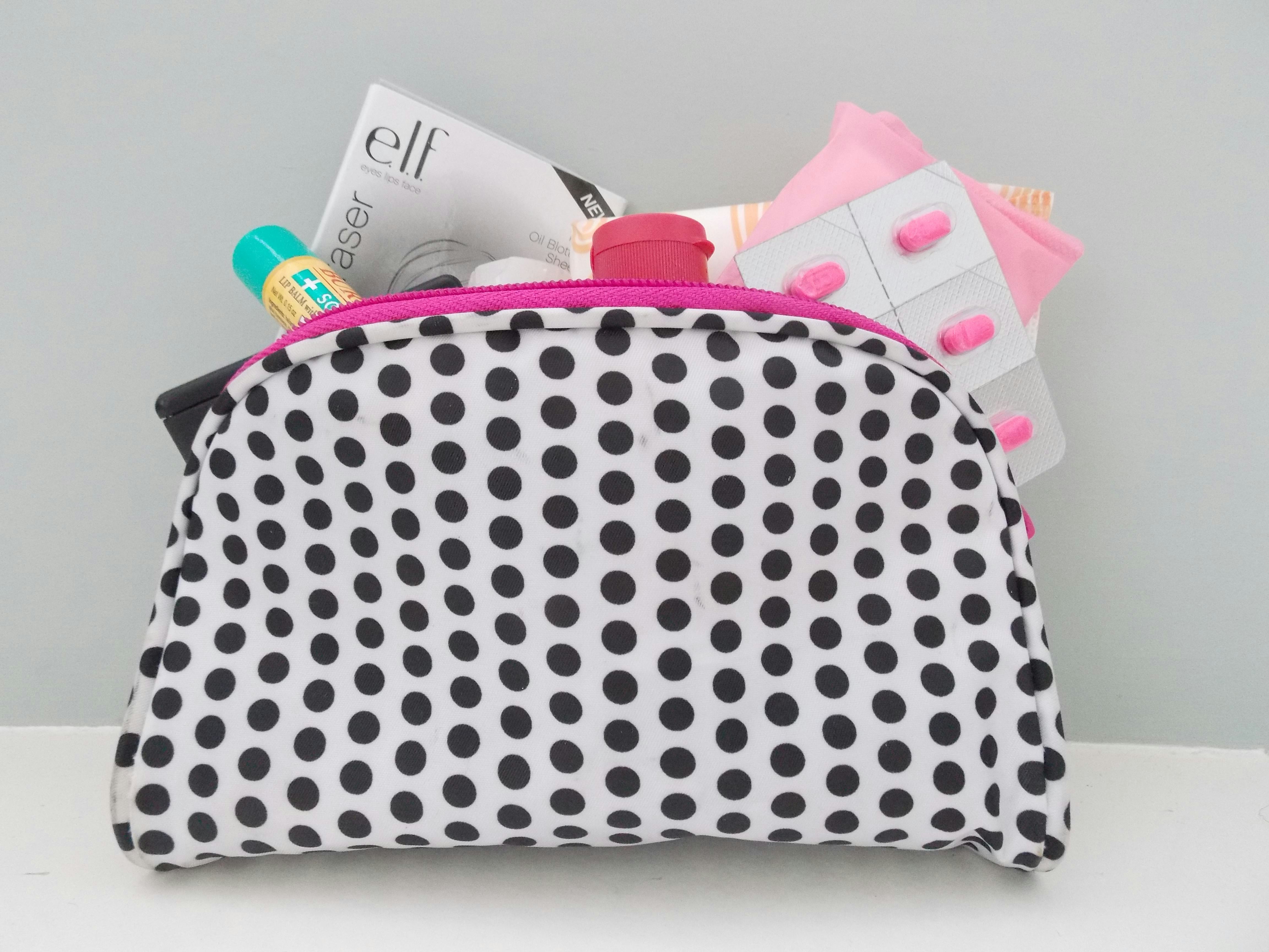 Last but not least, you need a bag to store all your goodies in. My bag is quite small, about the length of a pen, and pretty slim in width, so it easily fits into almost all my actual handbags, with the exception of clutches, of course. Keeping a small bag like this makes it super easy to find my necessities as well as making the switch from bag to bag effortless. Instead of having to fuss with all this stuff individually, it’s just one step. Whether your bag is floral or even an old makeup bag, anything that keeps your things snug and safe will do.