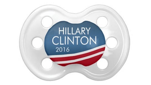 Don't want to pin a button on your baby? Understandable. Have them rock this pacifier instead! (Hillary Clinton 2016 Modern Swoop Design BooginHead Pacifier, $8, Zazzle)