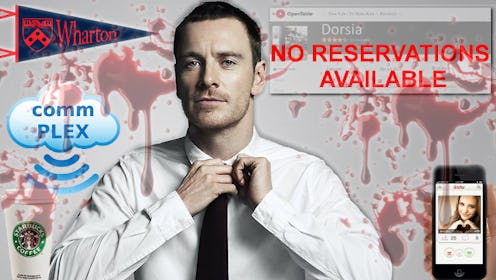 But a lot has also changed since the 80s and 2000s, when the movie premiered at the Sundance Film Festival. After the 2008 financial crisis, big financial firms aren't as stable as they used to be, so I'd imagine a modern Patrick Bateman (played by Michael Fassbender) would be a graduate of the University of Pennsylvania's Wharton School of Business and would end up with a job a start-up with a cutesy logo and name (let's just simply call it commPlex). He'd still be all about hair, skin, and suits that were very on fleek, but he wouldn't be living in Manhattan — he'd be all about Williamsburg, Brooklyn. He'd have a spoiled, trustafarian fiance (played by Emma Stone) who he mostly ignores while trolling Tinder for willing sex partners and, well, murder victims. Patrick Bateman would have so much fun on the internet, wouldn't he?