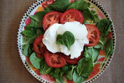 And that's it — it is that simple! From start to finish, not including the cooling time, you can go from a gallon of milk to fresh mozzarella in about 45 minutes. My mozzarella came out a little creamier than the store bought kind, but it was still melty and gooey and oh-so-delicious. I sliced it up and ate it plain, and later, made a spinach and tomato salad with some olive oil and vinegar dressing.