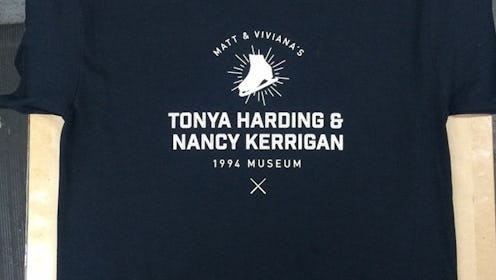 When comedians and roommates Matt Harkins and Viviana Rosales Olen sat down to watch a documentary about disgraced Olympic figure skater Tonya Harding, they didn't expect to end up curating a museum dedicated to Harding and the infamous 1994 attack on rival skater Nancy Kerrigan that derailed her career. But now, several months later, their brainchild The Tonya Harding and Nancy Kerrigan 1994 Museum will have its gala grand opening this Saturday, April 18th, in Williamsburg, Brooklyn. Their homegrown museum contains historical and news memorabilia, fan art, photographs, dioramas of Harding's triple axel twirl, and a plethora of other materials telling the tale of the two skaters — well, as much of a plethora as you can fit inside the hallway of an apartment, anyway. Because Harkins and Olen skipped on shopping for gallery spaces, or selling investors on the idea of opening a museum dedicated to a 21-year-old sports scandal, and decided to open the museum in their house instead.