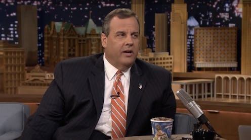 On The Tonight Show Starring Jimmy Fallon, New Jersey Gov. Chris Christie laughed off jokes about his weight as he set the timeline for what could be an announcement of his presidential candidacy. During Wednesday's episode, Christie and Jimmy Fallon talked about running for president over a pint of the limited edition Ben & Jerry's flavor "The Tonight Dough" — a caramel and chocolate ice cream mix filled with cookie and peanut butter dough. FYI, you can pick it up in grocery stores now. Who knew!
