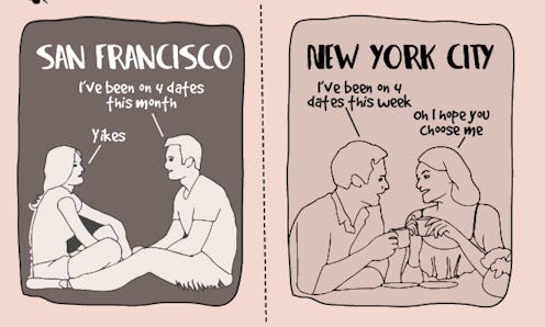 There's a reason that Sarah Cooper's comic on the differences between New York and San Francisco is so on point, and that's because everything in it is alarmingly and hilariously real. New York and San Francisco are basically different planets. I truly believe that all of us are secretly born belonging to one of those cities the way that people get sorted into Hogwarts houses, and that we're supposed to spend misguided years in our twenties and thirties figuring the hell out which one we are.