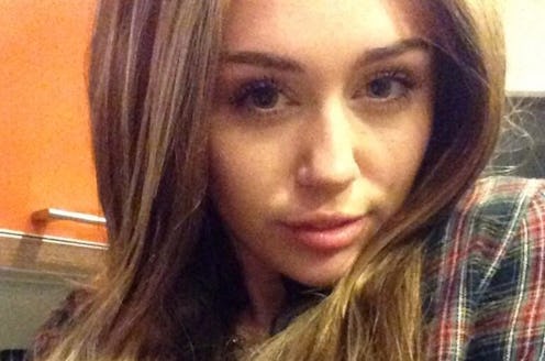Upon seeing this picture, I immediately had two thoughts: 1) Damn, Miley Cyrus looks really good with long brown hair, and, 2) How amazing would it be if she went as herself during her Hannah Montana days for Halloween? It would be kind of amazing, right? I know Cyrus is all into her whole "new image" now with the bleached blonde hair and the twerking and stuff, but, as we saw on Saturday Night Live, she's not opposed to making fun of herself, and there would be no move more meta and trolltastic than just dressing up as the character she's tried so hard to distance herself from for one night. Anyway — all that said, Miley Cyrus tweeted two pictures of herself wearing wigs last night, because she was just bein' Miley, and now everyone's talking about it.