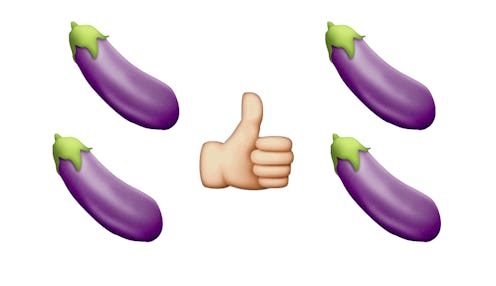 The parallels between #freetheeggplant and #freethenipple are obvious — but perhaps #freetheeggplant isn't as silly as seems at first. I realize that a little picture of an eggplant doesn't quite carry the same importance as, y'know, the idea of not policing women's bodies… but it is sort of interesting that the picture that's representative of male genitalia is the thing that's getting censored this time, is it not? I suppose at least that censorship is finally consistent, even if it's mostly through its inconsistency: The same way many social media sites have come under fire for allowing some posts featuring women's bodies to remain and removing others seemingly with no rhyme or reasons, we're seeing the same thing here with the eggplant versus the arguable more problematic gun, syringe, and pill emoji.