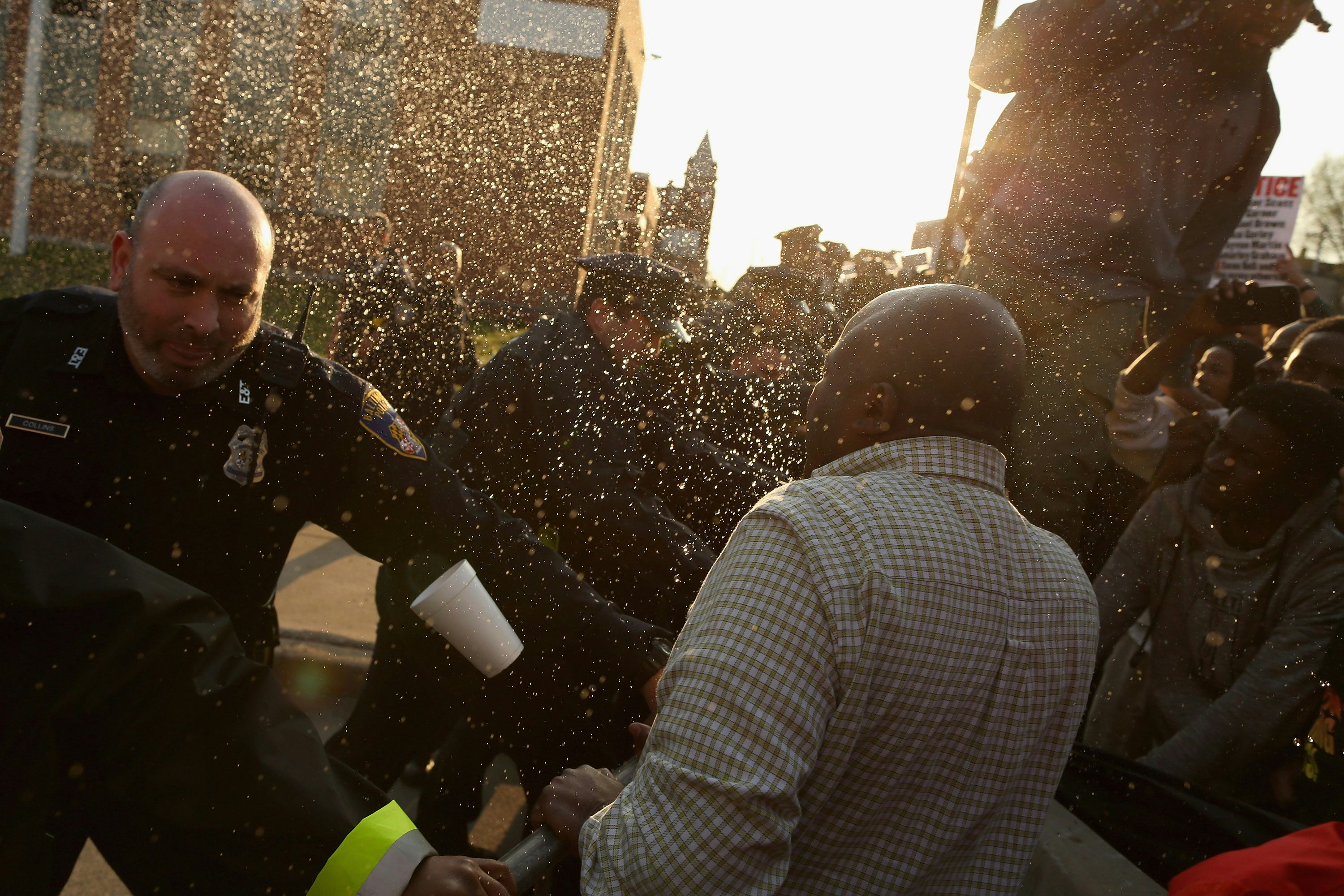 Many of the protesters on Monday were teenagers, prompting conversation about what forces are shaping the lives of black youth. Several police officers have been injured — about 15, mostly injured from flying debris — and protesters are mainly operating on the slogan, "No justice, no peace." The reverend who gave Gray's eulogy at his funeral ended his impassioned speech by shouting, "No justice! No justice!" to which the crowd responded, "No peace!"