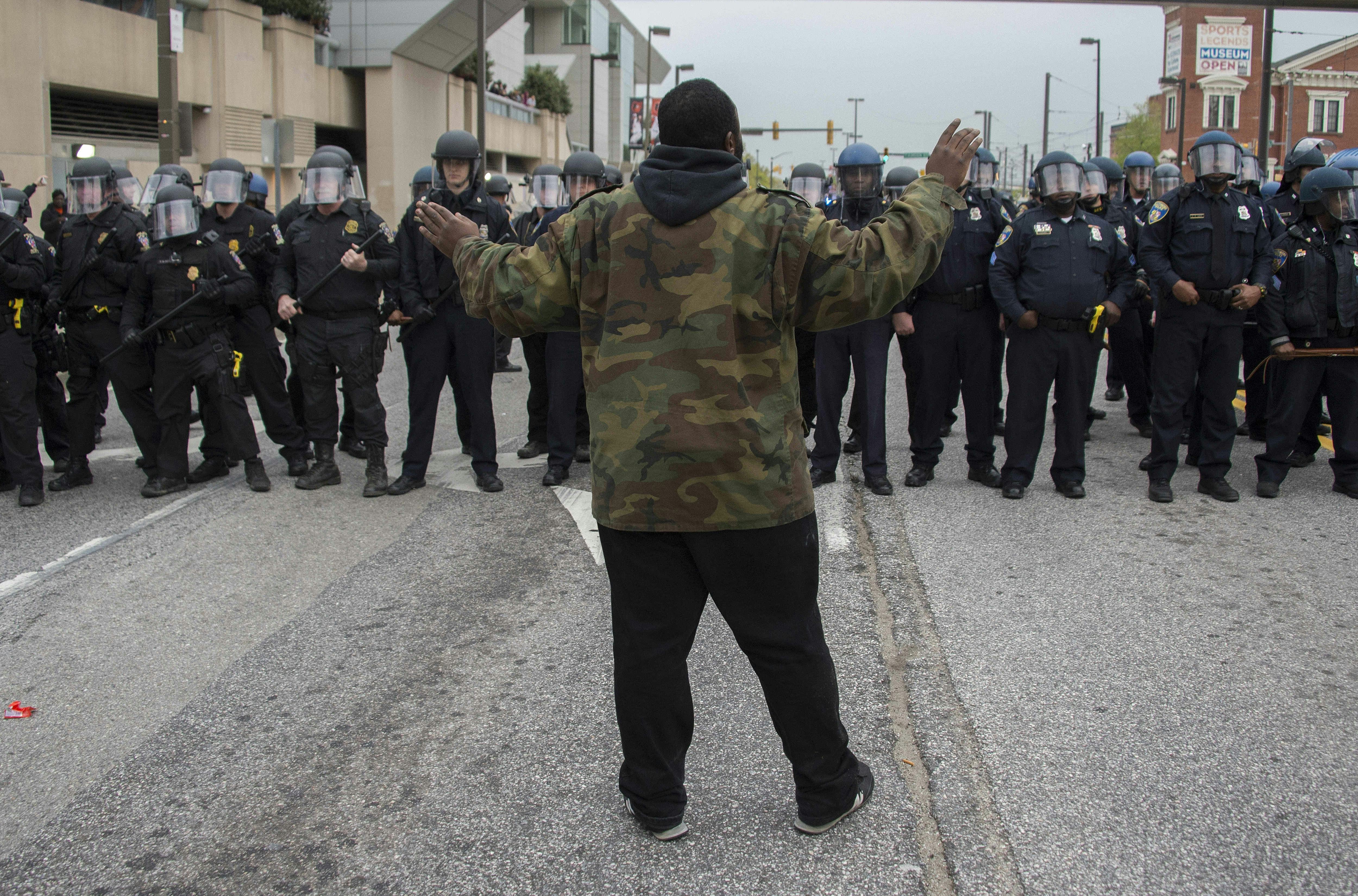 The protests turned violent around Monday afternoon, after Gray's funeral. Police have been using tear gas and pepper spray to hold back violent crowds, and there had been about 27 arrests made as night arrived, according to The New York Times. The governor said in a statement: