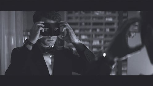 The trailer features Christian and no one but Christian, but don't expect it to tell you everything you need to know about the film. It's more or less a moving version of the teaser picture from Fifty Shades Darker that has been floating around the Internet in the last week, featuring Christian getting dressed before a mirror before sliding a masquerade mask onto his face. The shot then fades into black and white, symbolizing both the shades of Grey we're about to experience and the darker feel of the sequel film.