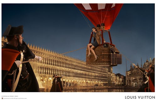 In these latest images — which are designed to feature Vuitton’s new Vivienne bag and Tambour watch, but are also probably evidence of a worldwide plot that may or may not involve the Illuminati — the hot air balloon is back, and Bowie's here to save the day. He'll also be singing a new version of "I'd Rather Be High." Swoon! It's hard to tell exactly what happens yet, as the second installment of the film won't be released until November 7, but there will be a masked ball, some frantic running down dark alleyways, and a man playing the piano who we can only assume is the Thin White Duke himself.
