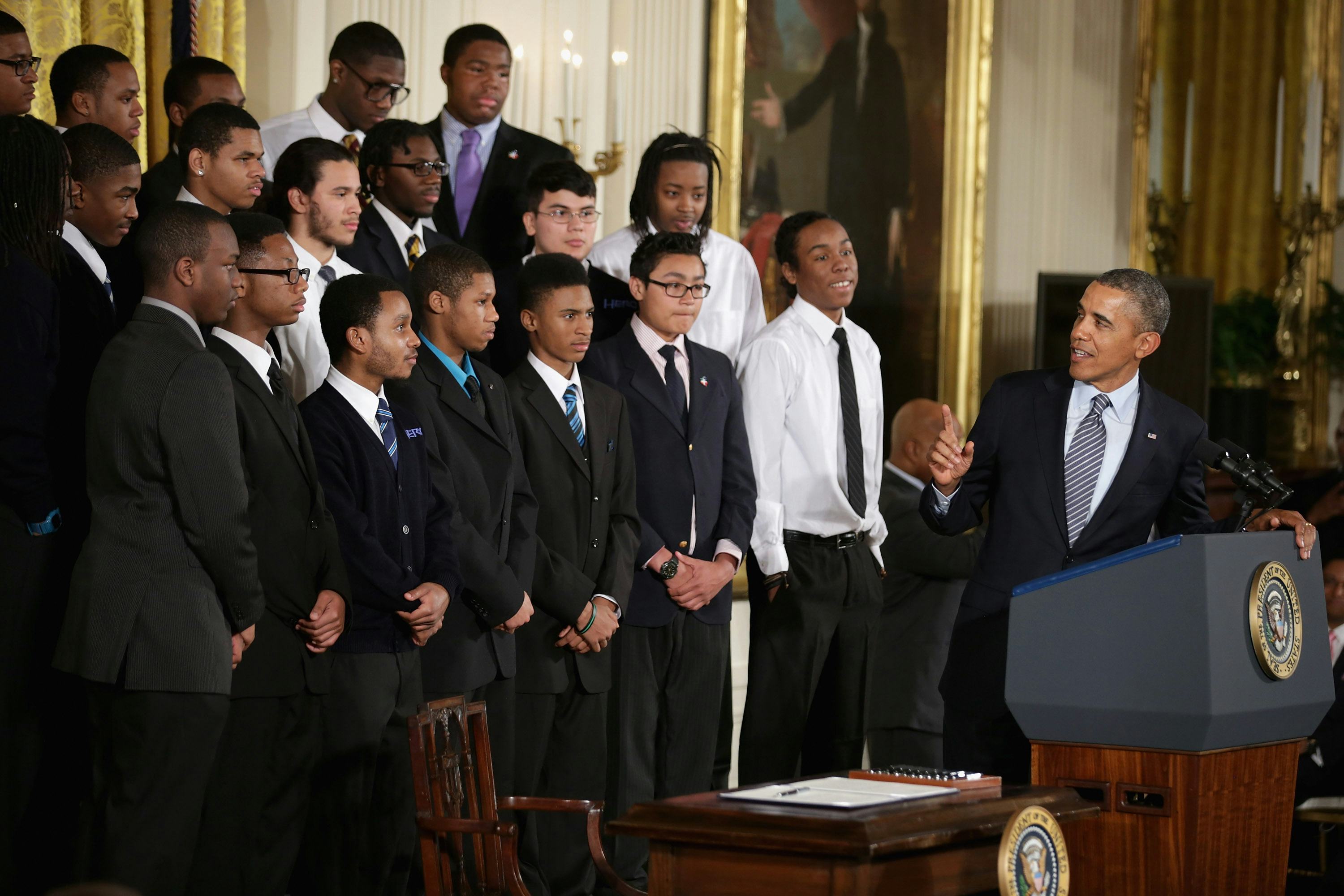 "That sense of unfairness, and of powerlessness, of people not hearing their voices, that’s helped fuel some of the protests that we’ve seen in places like Baltimore, and Ferguson and right here in New York," Obama said to a large audience at Lehman College. "In too many places in this country, black boys and black men, Latino boys and Latino men, they experience being treated differently by law enforcement."