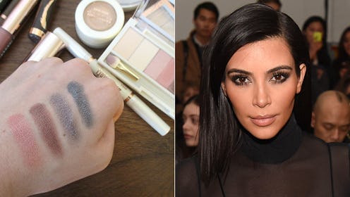 If one of the sisters goes glam, it's Kim. So obviously, I had to see if the products could help me achieve her signature smokey eye, contoured face, and nude lip.