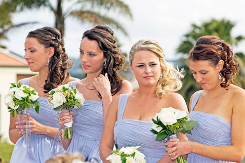 Not only that: weddings are a bridesmaid’s cesspool of inappropriate questions and unsolicited opinions about her relationship, sexist assumptions about marriage, and clichéd statements about her appearance. And it's not just the bride who's guilty of these things: more often than not, it's the whole shebang of folks involved in a wedding who carry on this kind of annoying bridesmaid banter.