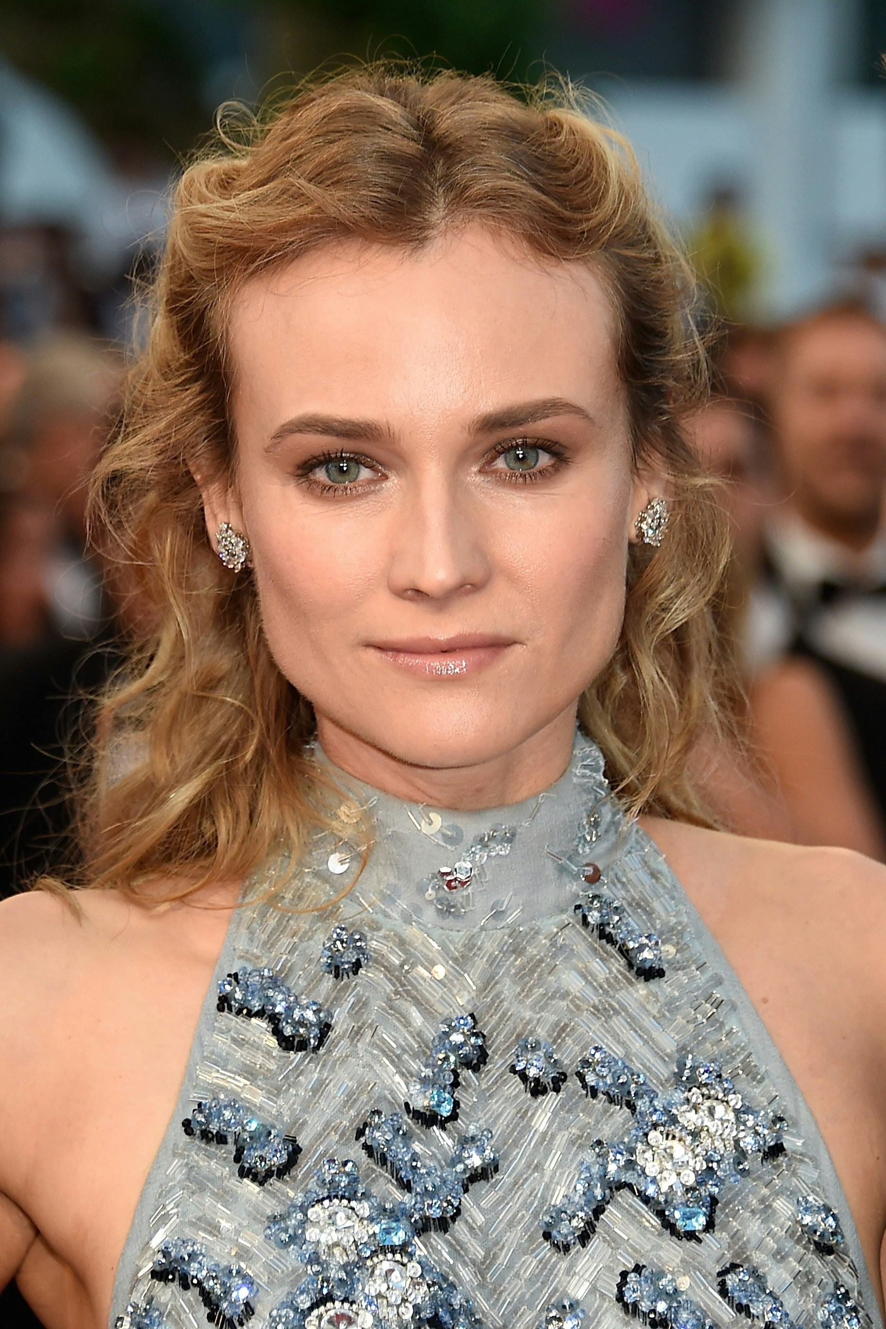 Kruger walked the red carpet at the films premiere on Saturday, wearing a halter neck Prada gown with a flowing train. The powder blue dress featured sheer side panels, revealed some tasteful side boob, and was completely embellished on the front with a darker blue and white motif. Though the front covered her from her neck to the floor, the dress had an open back, save for a gauzy sash flowing ethereally from her halter. It was truly a work of art, and though it isn't white, it would seriously make a stunning wedding dress. With fresh and dewy makeup, and her hair in loose, undone waves with her front pieces pulled back, the 33-year-old actress looked as though she had stepped straight off the beach and into this glamorous gown. Talk about undone elegance.