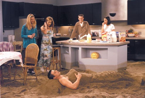 Whenever the gang travels, it's always quite an adventure, and there's always some mischief. Like when they went to Vegas, Rachel and Ross end up married (and later, divorced). In Montauk, Rachel writes Ross a long letter that makes him fall asleep, and Joey gets buried in the sand — which is in the shape of a mermaid's body (and of course he doesn't mind). In Barbados, Monica's hair frizzes to an extreme, while Joey and Rachel try to figure out what their romantic chemistry means. And of course, we all know what happened in London — Chandler and Monica hook up.