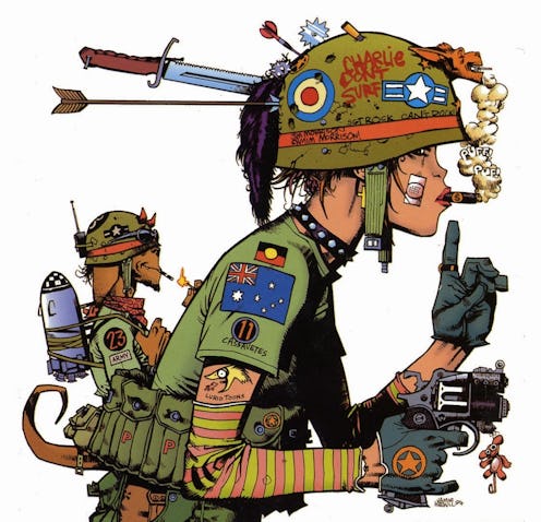 Tank Girl was created by Jamie Hewlett and Alan Martin in the late 1980s. She is a feisty femme who graces the pages of comic books — she had a live action stint on the big screen, too — and her fiery attitude and unmistakable Tank Girl style has become legendary. The Tank Girl comic strip was first seen in Deadline, a British comic magazine. Tank Girl featured in Deadline's debut issue in 1988 and ran through until the magazine finished in 1995. You may recognize Hewlett's later work; after creating Tank Girl he partnered with Damon Albarn of Blur to create the edgy, cartoon band Gorillaz. Due to Tank Girl's infamy, a series of graphic novels was created featuring the cartoon strips seen in Deadline, which soon grew due to its popularity. Tank Girl has been released by an array of publishers and she has been reincarnated by many different acclaimed artists from Ashley Wood to Jim Mahfood.