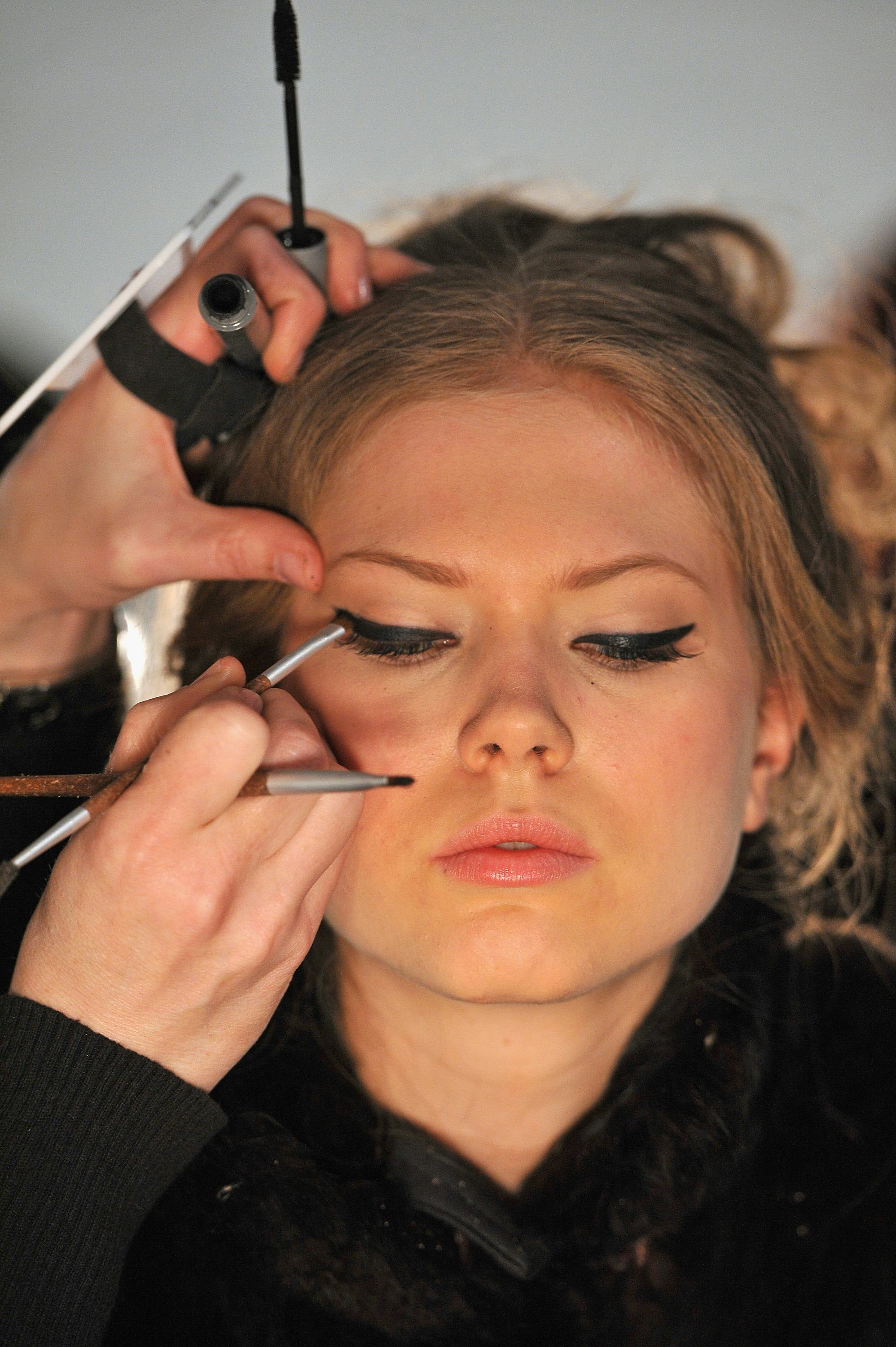 If you have round eyes, like Alexa Chung, you are in luck because your doe-eyed lids can handle whatever you throw at it. The cat-eye is a really popular look for this shape, however, it is quite difficult to perfect. Consider the scotch tape technique. Using an eyeliner pencil, create a tiny "v" on the inner corner of your eye. Then follow that line with liquid liner and wing it towards the outer corner.