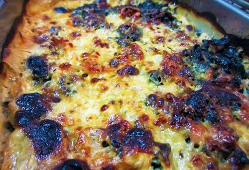 - Top the gratin with the cheese and place in the oven.