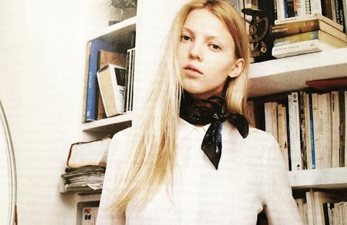 Just because they’re called neckerchiefs doesn’t mean you necessarily have to wear them around your neck. Sonya Esman of the blog Class is Internal tied a square scarf around one of the belt loops on her skinny jeans. Spelled out, it doesn’t seem like the greatest sartorial idea. But as you can see from the photo, it’s definitely an eye-catcher.