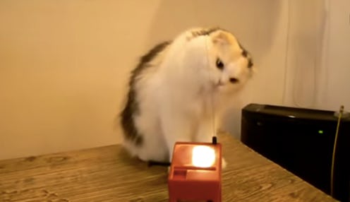 Perhaps I oughta back up just a bit to clarify what a theremin is. It's an instrument not controlled by physical contact. Instead, it's controlled by two antennas and physical contact ("your hand" or, in this situation, "a cat paw") in relation to that. It sounds pretty wild. Especially when the cat takes a stab at it:
