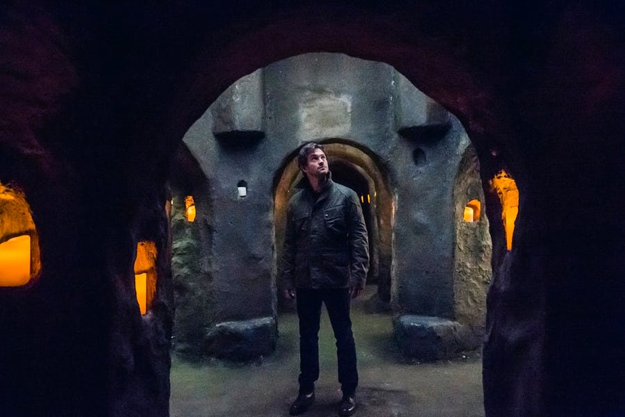 Teasers for "Primavera" hint at an impending collision between the hunter and the hunted. A promotional still reveals Will Graham standing in a distinctive cavern-like room surrounded by candles (above). Another shows Hannibal standing in what's very clearly the same room: