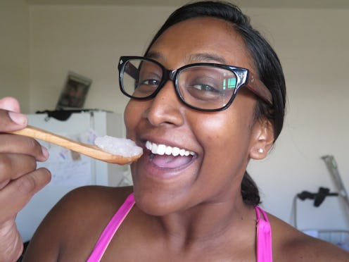 Listen, I am most definitely one of those coconut oil worshippers. So when my editor challenged me to use nothing but coconut oil for a whole week, I said yes quite enthusiastically. You should probably know that I am one of the last few people on earth who stick to skincare products once I've fallen in love with them. I'm not really one for testing something new every other week. For years my nightly cleansing regimen consisted of a six-step system from one brand that starts with makeup removal, then moves to double cleansing and double moisturizing. I don't skimp on the good stuff. I deviate from time to time to test new products for work, but I do back to things that are familiar. So, even though I'm in love with that coconut oil, I knew that going off my regimen will probably drive me a little nuts.