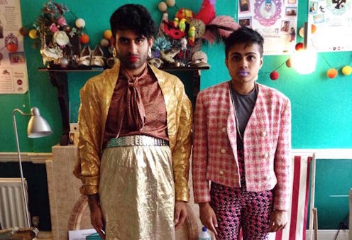 This year, I was introduced to the perfect and magical slam poetry group Dark Matter. I was hypnotized as members Janani Balasubramanian and Alok Vaid-Menon passionately recited pieces revolving around their queer/trans South Asian identities. Their intersectional feminist themes about queerness, race, trans identities, and colonialism effectively point out the ugliness of a cis and heteronormative society while delivering gut-wrenching anecdotes about their experiences growing up as queer/trans South Asian people in America. Their anger was infectious, unapologetic, and had me leaving the show more humbled by and understanding of the ways in which my queer white identity is oppressive and oppressed. But being a fashion and beauty writer, I also couldn't help but take note of their amazing outfits.