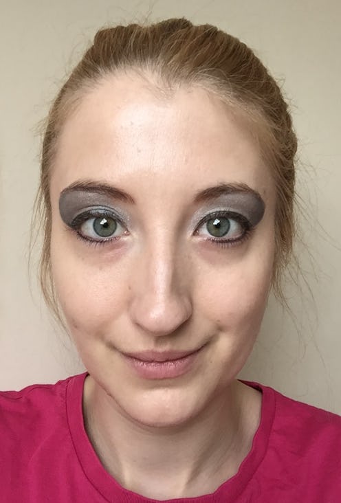 I started out by using the darkest shade in my previously mentioned L'Oréal eyeshadow palette. I chose this dark shade and swept it dramatically all over my eyelids and right up to my eyebrows, as I thought it could slightly mask the identity of the wearer, thus making it a perfect shade for a rebel.