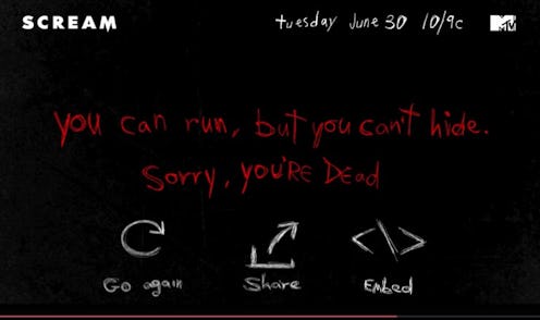 That being said, this promo doesn't totally deter me from checking out the new Scream. While I'm sure that the show will be just as (if not even more) violent than this interactive promo, MTV's Scream also boasts two female leads. A guy may be the star of the interactive promo, but it's women who will carry this new series, and hopefully act as more than just the killer's victims. Let's hope that this version of Scream carries out the original legacy in more than just its body count.