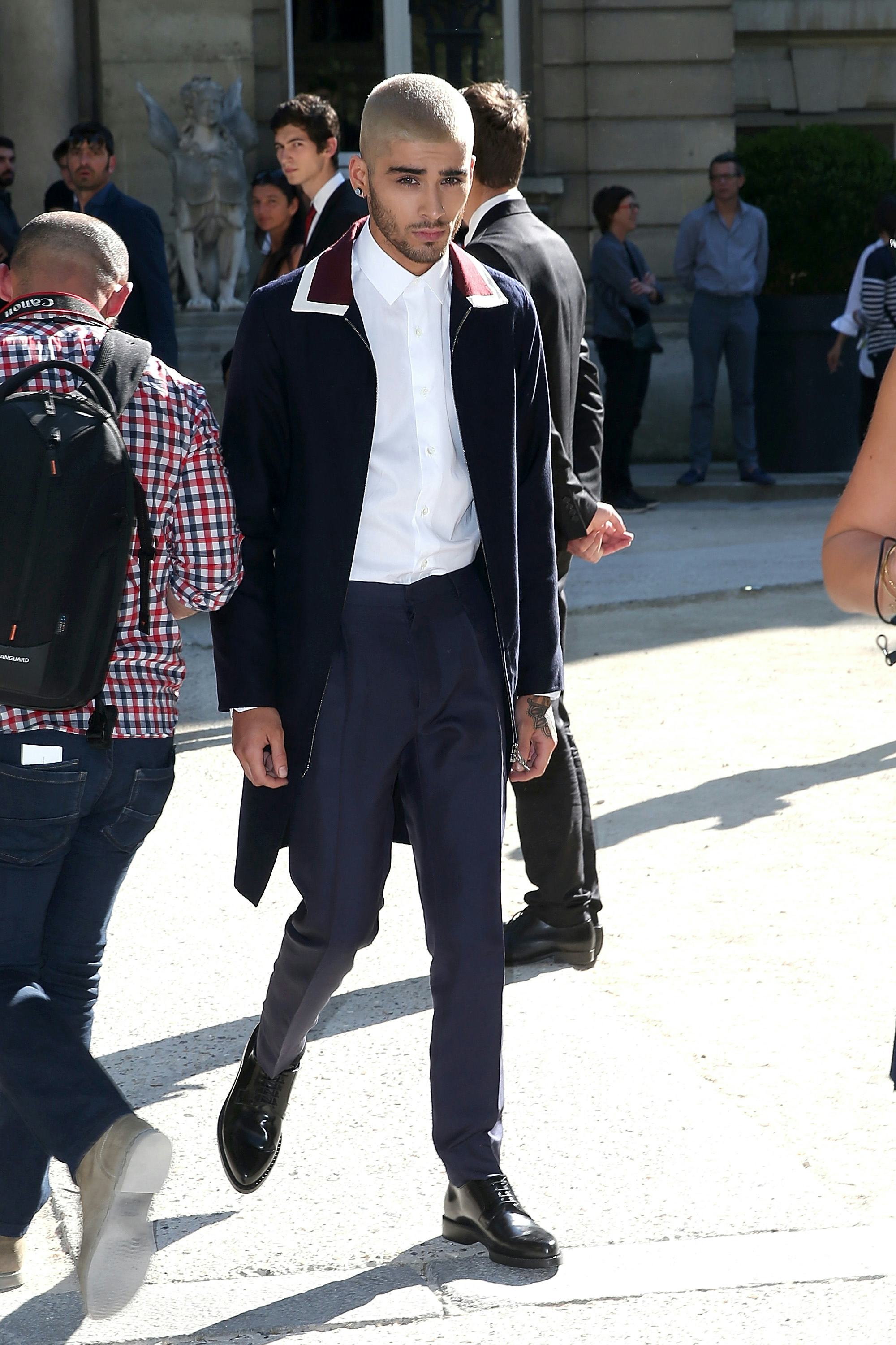 And, just for good measure (that's a tailoring pun), here's another shot of Zayn stepping out of his ride. Just so you can really get a feel for his outfit. (And face. And bod.)