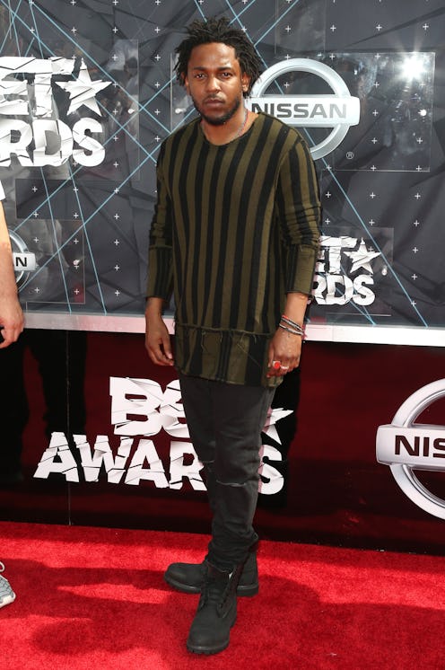 During the opening performance of the BET Awards, Lamar set a high bar by performing atop police cars that were covered in graffiti, which, as Bustle's Tiffany Thomas pointed out, was likely an homage to his hometown of Compton, California. As he rapped about how, "we hate Popo, wanna kill us dead in the street for sure, i'm at the preachers door," the lights went out and the stage went dark except for the name of Lamar's album and the American flag. Then, when the lights and music returned with a vengeance, his surrounding dancers were marching in front of a screen of American flags, while carrying American flags themselves. It might have been a grim representation of America, but it was one that, sadly, is the reality for many neighborhoods.