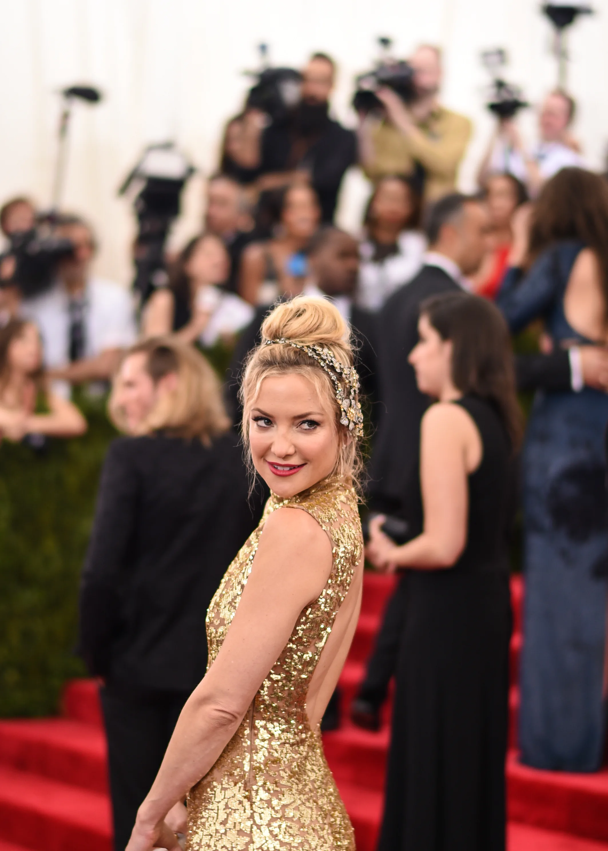 It's not surprising that we were longer for the choices we saw around her Hudson as she lounged on the floor. After all, this is the same woman who rocked a gorgeous gold sequin Michael Kors gown to the Met Gala and also designs totally awesome athletic wear. The actress may be known for having a sunny, boho style, but one of the coolest things about her is her ability to change up her looks and still look amazing. She's rocked a chic ballerina-inspired jumpsuit and a super vampy, dark Michael Kors gown showing that she's no one trick style pony.