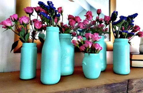 3. Paint glass jars and bottles with beachy hues