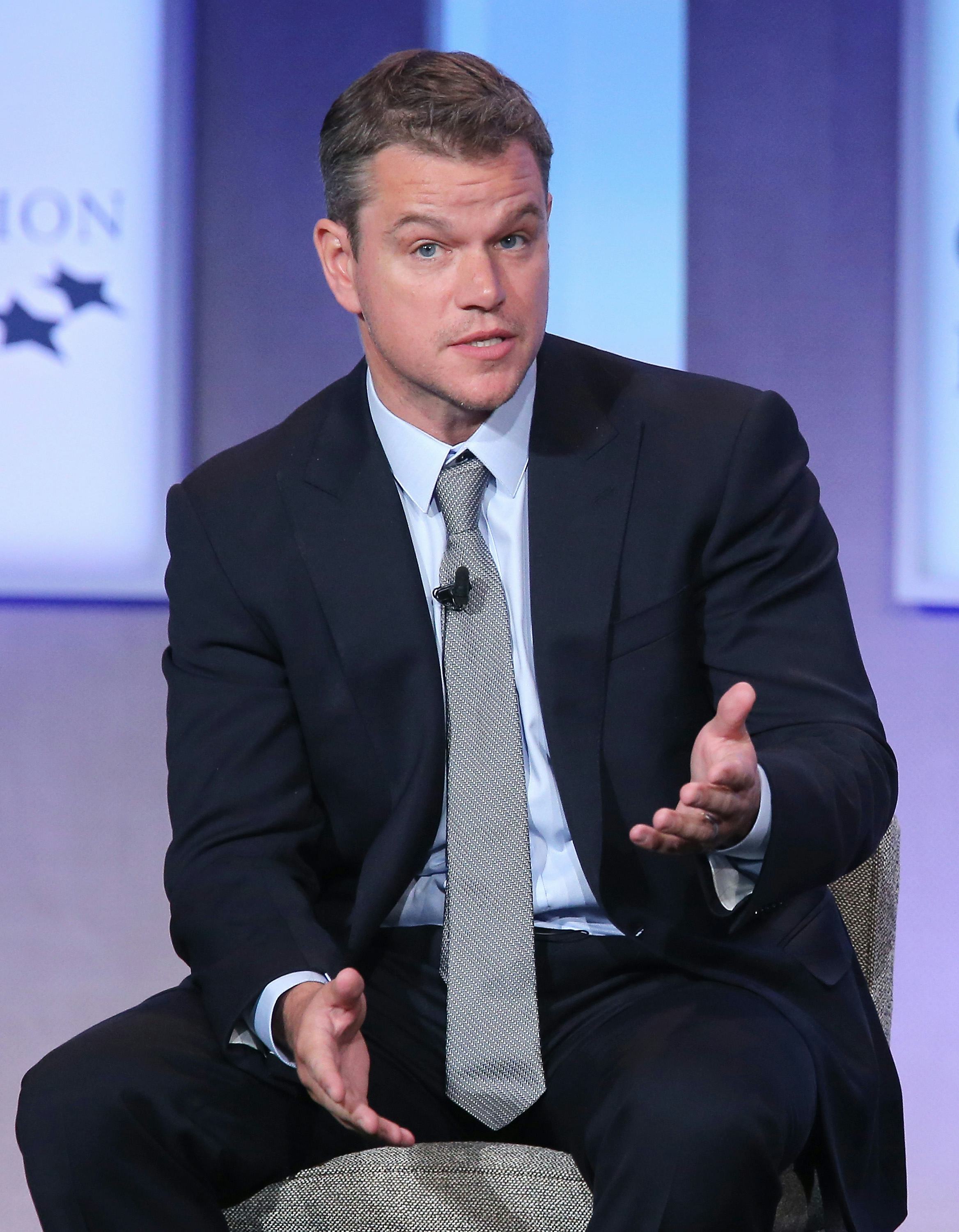 Damon showed off his new hairstyle at a film press conference in China. At first, it was a pretty shocking sight, since I am so used to seeing the baby-faced actor and Ben Affleck BFF with close-cropped hair. Yes, he is still adorbs, because that face. But it is certainly a surprising look for him since short hair is his thing.